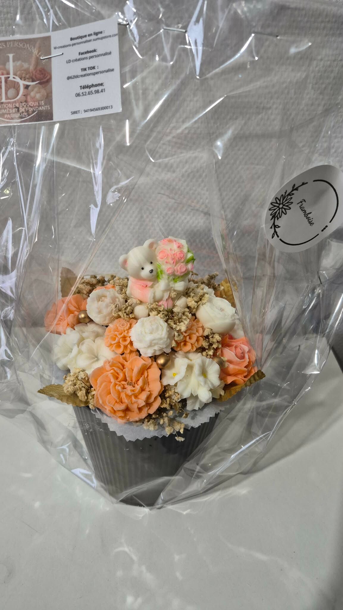 Offrez un bouquet de fondants parfumés personnalisé, une alternative originale et durable aux fleurs fraîches. Chaque bouquet est réalisé avec soin et peut être personnalisé avec le texte de votre choix (prénom, message, événement).
